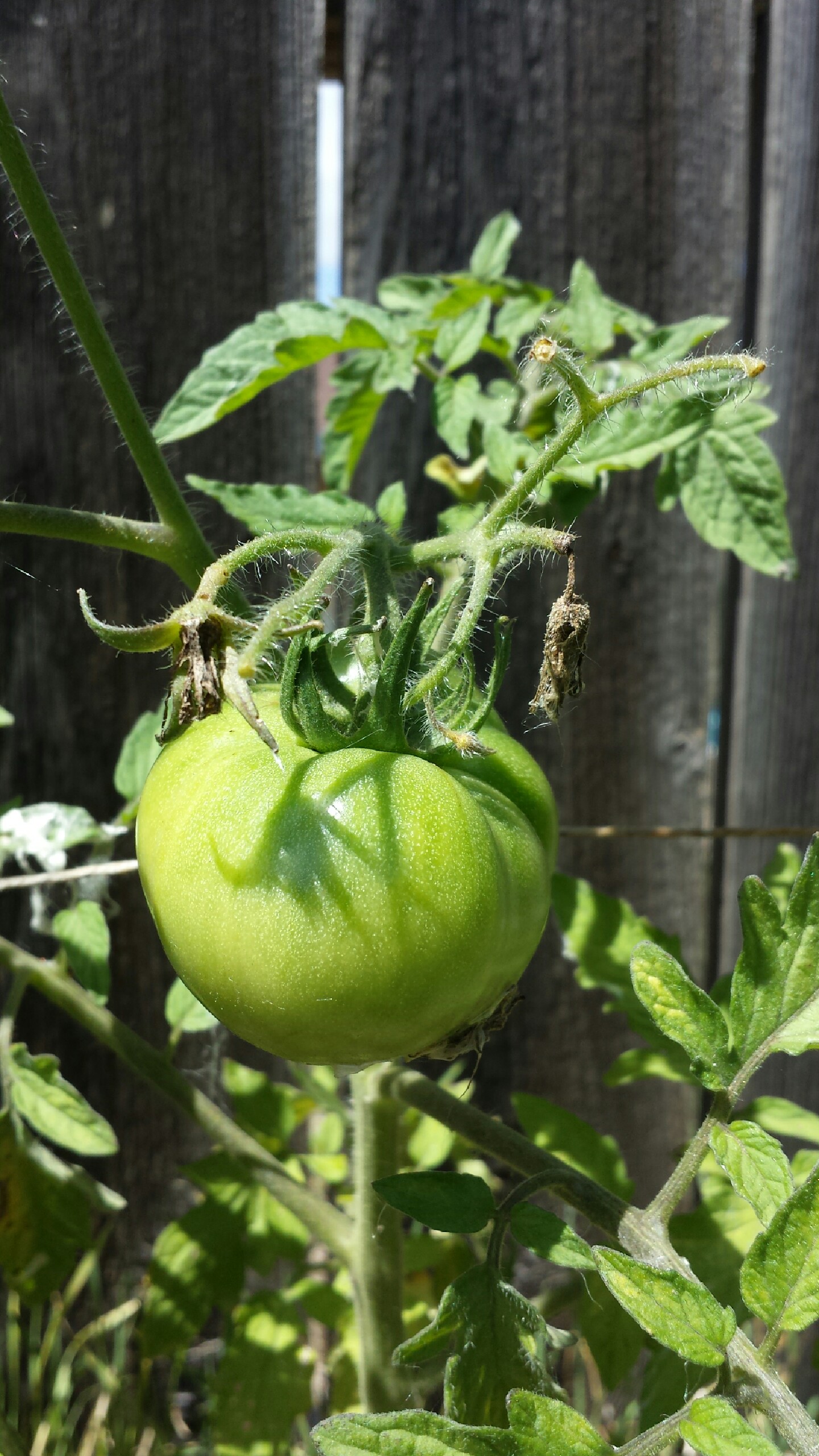 The little garden is putting on veggies. I have a tomato and baby peppers.