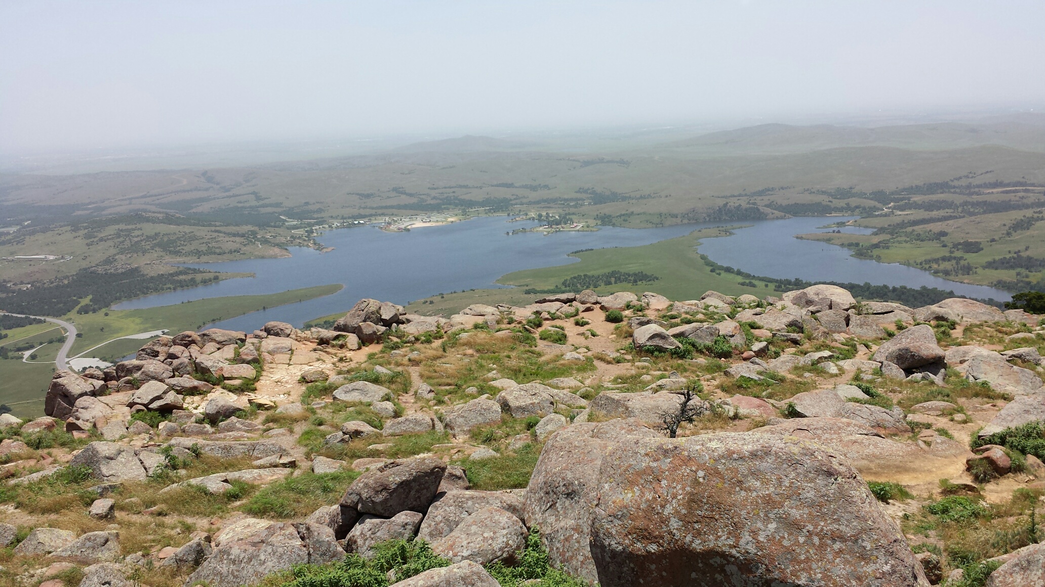 Last week Hubby and I went to the Wichita Mountains in southwest Oklahoma. Recently retired we had the opportunity to travel when we wanted, where we wanted. I loved the scene from the top of Mount Scott