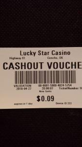 Today it is casinos in the Ponca City area with a steak dinner promised. On Saturday after the Bricktown tour on the way home to Enid, we stopped at Lucky Star Casino near El Reno. Big gambler that I am, I put a $20 bill into a slot machine. I managed to bet on it for about an hour and came home with a voucher too small for anymore bets. Oh well, I could have bought more wine instead of pugging the machines, but I didn’t. I was on vacation.