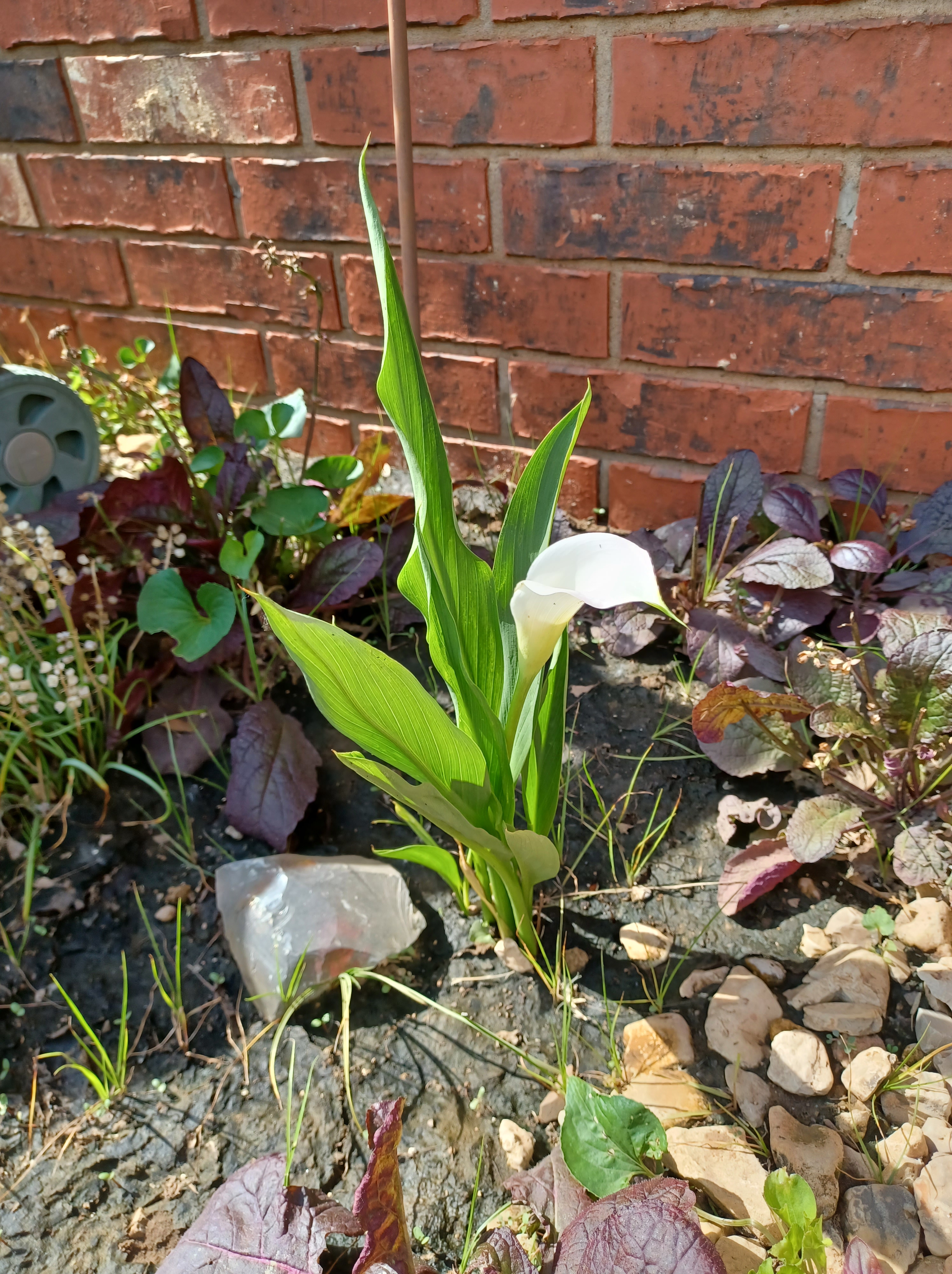 When we went to South Africa, there were gardens of Calla Lilies outside out hotel. My daughter had Calla Lilies in her wedding bouquet. I’ve always loved them, but never grew any. Now, thanks to the generosity of a neighbor and an accidental planting, I’ll have some of my own.