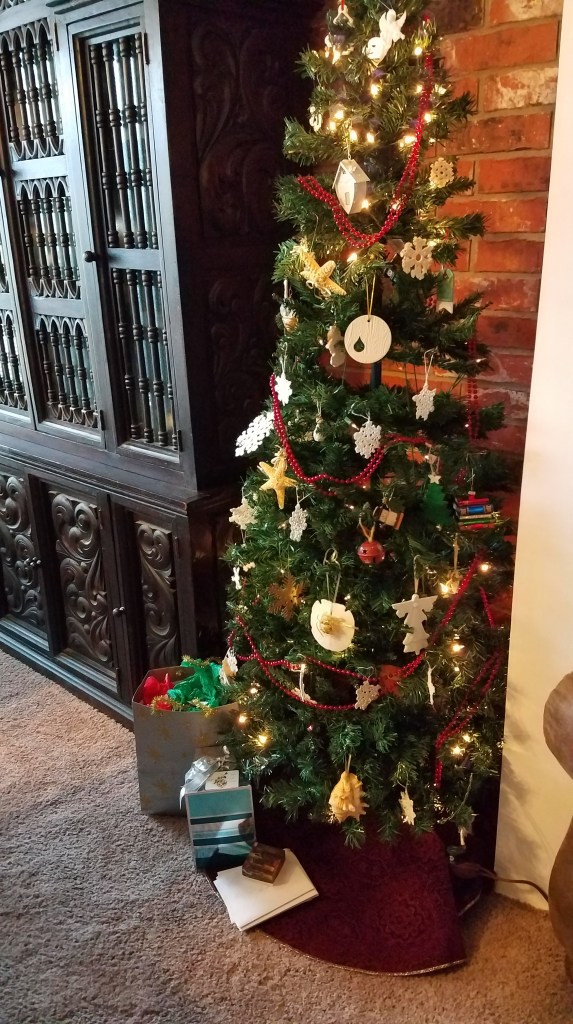 It is Christmas Eve, and it feels a little strange at this house. We had thunderstorms last night and it’s been warm, but this is Oklahoma so that could change quickly. My few presents are wrapped and under the tree, and I have very little cooking to do. All very strange.