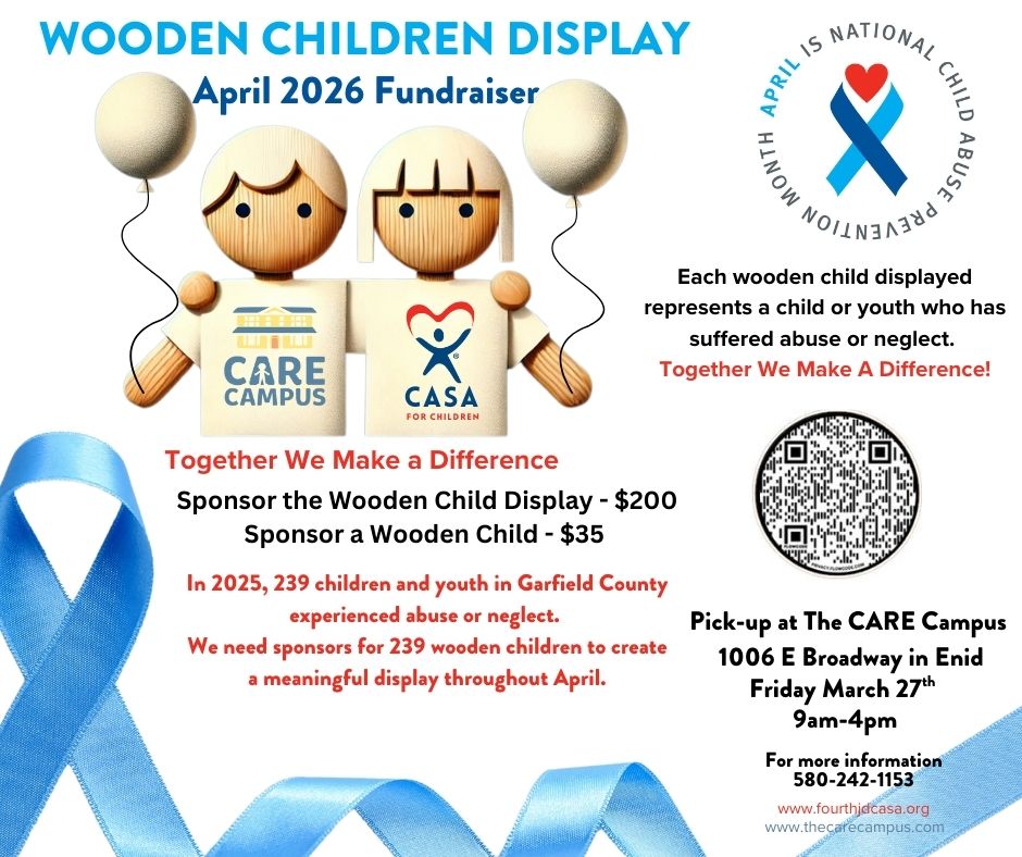 April is National Child Abuse Prevention Month, and The CARE Campus’ Fourth Judicial District CASA Program is reaching out to the community to raise awareness about child abuse and neglect in our county. Throughout the month of April, we will feature a display of wooden children on the courthouse lawn to spark conversation and highlight this important cause.
